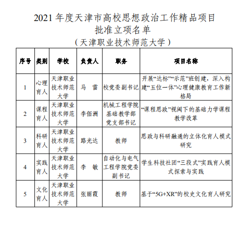 2021年度天津市高校思想政治工作精品项目立项名单揭晓 天职师大名列前茅