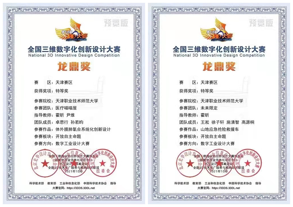 喜报 | 2个特等奖3个一等奖 乐玩官网学子参加第14届全国三维数字化创新设计大赛天津赛区选拔赛获佳绩
