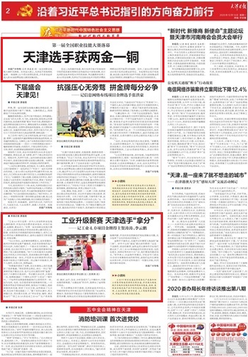 《天津日报》:第一届全国职业技能大赛落幕 天津选手获两金一铜