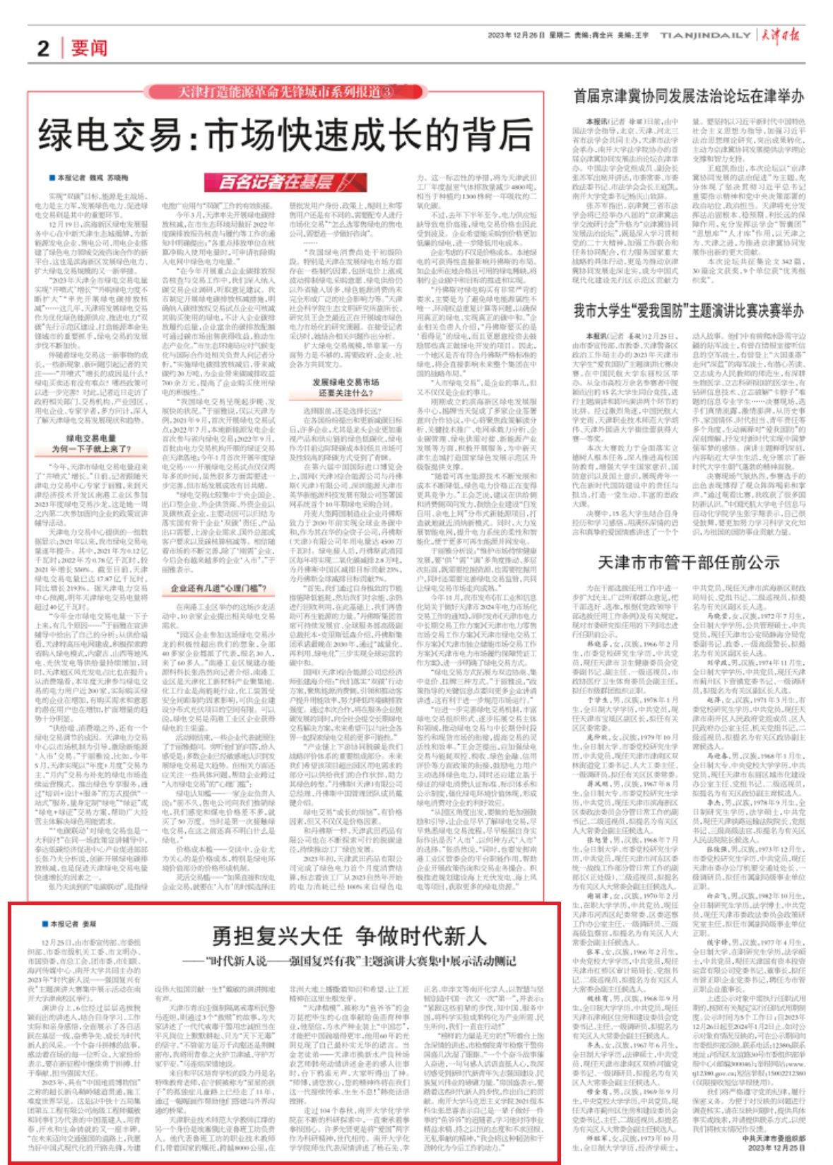 《天津日报》:勇担复兴大任 争做时代新人——“时代新人说——强国复兴有我”主题演讲大赛集中展示活动侧记