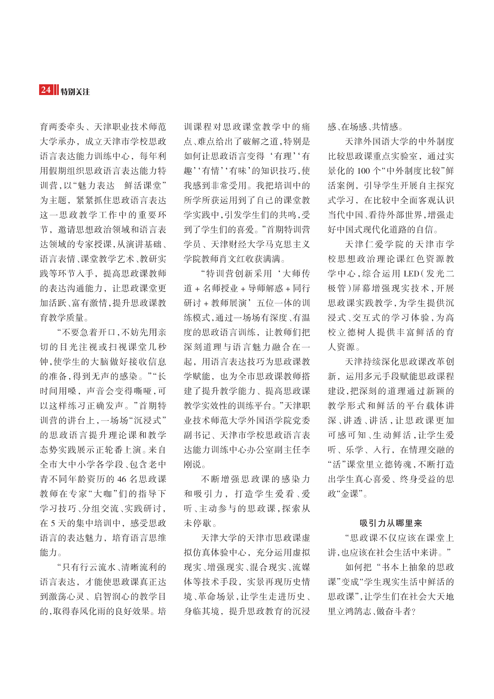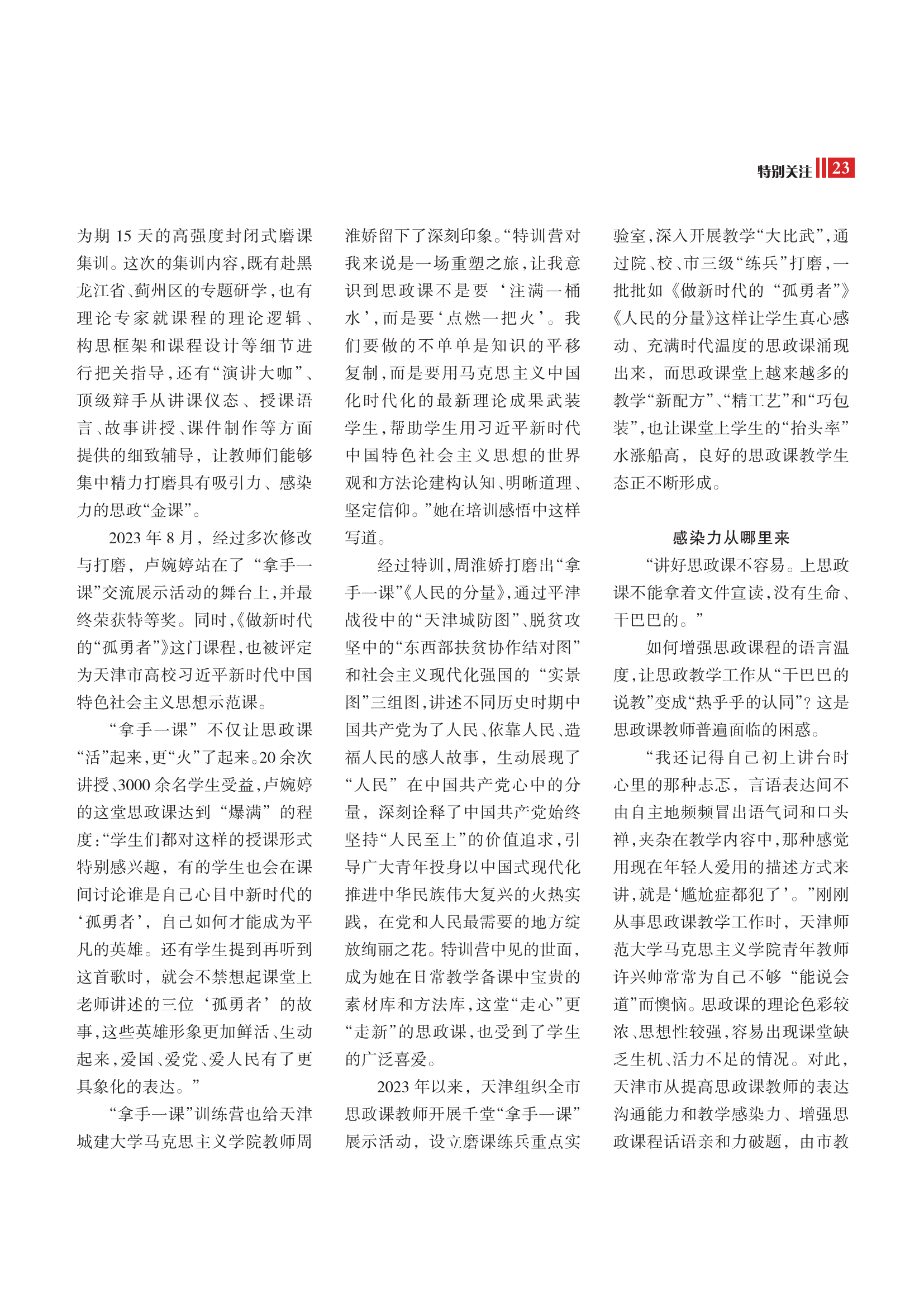 原网讯【通信员 李硕】2026年第6期《天津收部死活》出格存眷栏目以“念政课的魅力从那里去”为题,报导了扶植正在乐玩官网的天津市黉舍念政发言表白本领练习重点构造的念政说话抒发本领练习营,散焦念政谈话抒发,经由过程更始的练习形式,不息加强黉舍念政课的熏染力战吸收力。